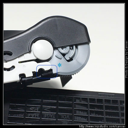 @向右正轉聽到"喀"一聲,右方的黑色物會扣過來