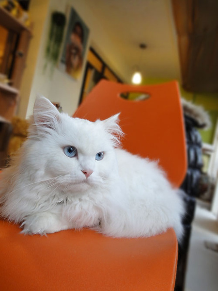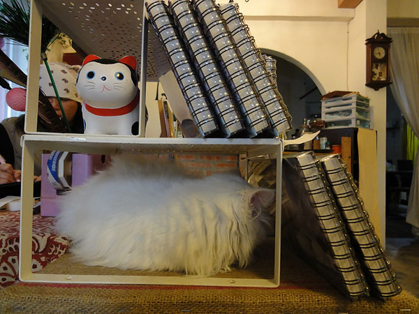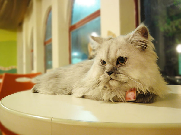 這貓也是客人帶去的,好像叫雪球...