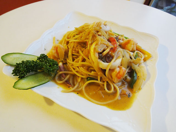 南瓜海鮮義大利麵 (老婆點的,南瓜醬不是我的菜)