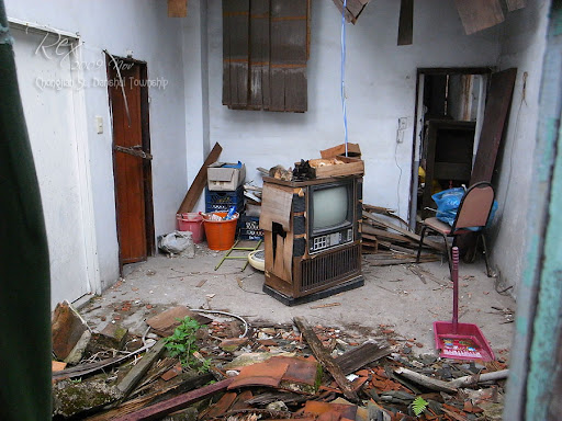 他老兄是要停這廢墟的門口,換機車出勤去做水電,於是我就不能窩在那窗口了...