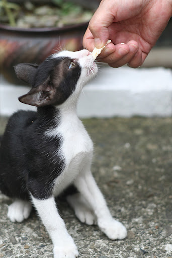 阿姨拿雞胸肉出來餵他們